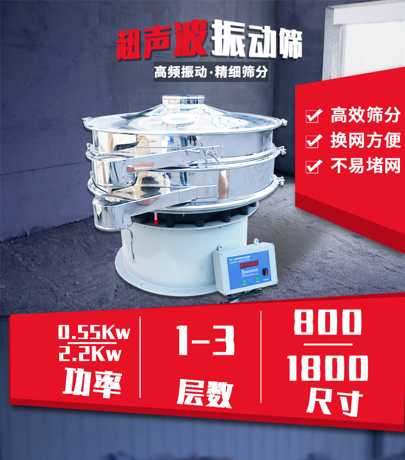【物料要求】:粉末物料 【產(chǎn)品簡(jiǎn)述】:超聲波振動(dòng)篩非常適合分級(jí)比重輕,粉末細(xì)的物料,超聲波換能器振頻達(dá)3.6萬(wàn)次/分鐘,非常精細(xì)的物料可以輕松透網(wǎng),尤其在負(fù)極...